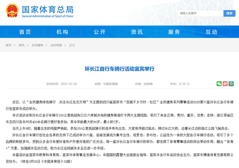 近日,以“全民健身绿色骑行 关注长江生态文明”为主题的四川省宜宾市“百城千乡万村·社区”全民健身系列赛事活动2025第六届环长江自行车骑行在宜宾市成功举办。